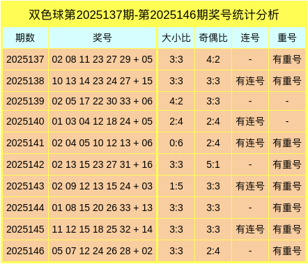 大小分析:上期奖号大小比为3:3,近十期奖号大小比为25:35,少量红球号码走势较强,本期预测大小红球号码比例和上期相似,参考大小比为3:3。